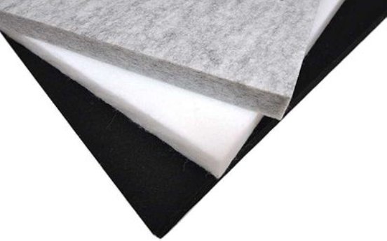 Controsoffitto fonoassorbente in fibra tessile di poliestere.